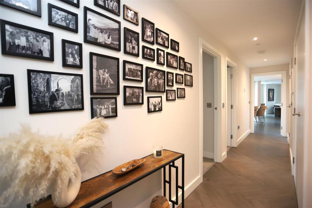 The apartment is accessed via a generous entrance hallway, with doors leading to all areas of accommodation.