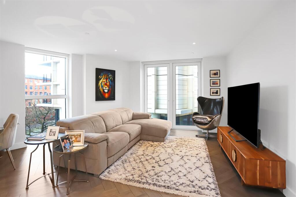 Apartment 2.02 is a beautifully presented second-floor apartment in Block A of the boutique Castle Wharf development, overlooking the Castlefield Basin. The property offers a bright and contemporary interior with high-quality finishes throughout, including floor-to-ceiling windows, electric blinds, and elegant herringbone flooring to the living space.