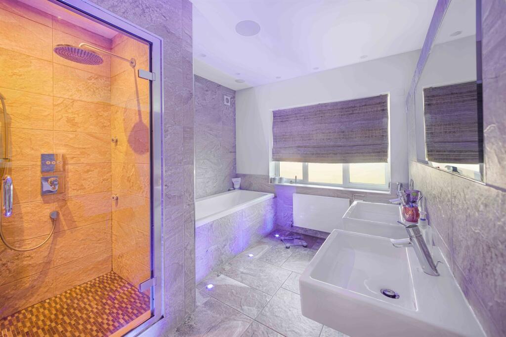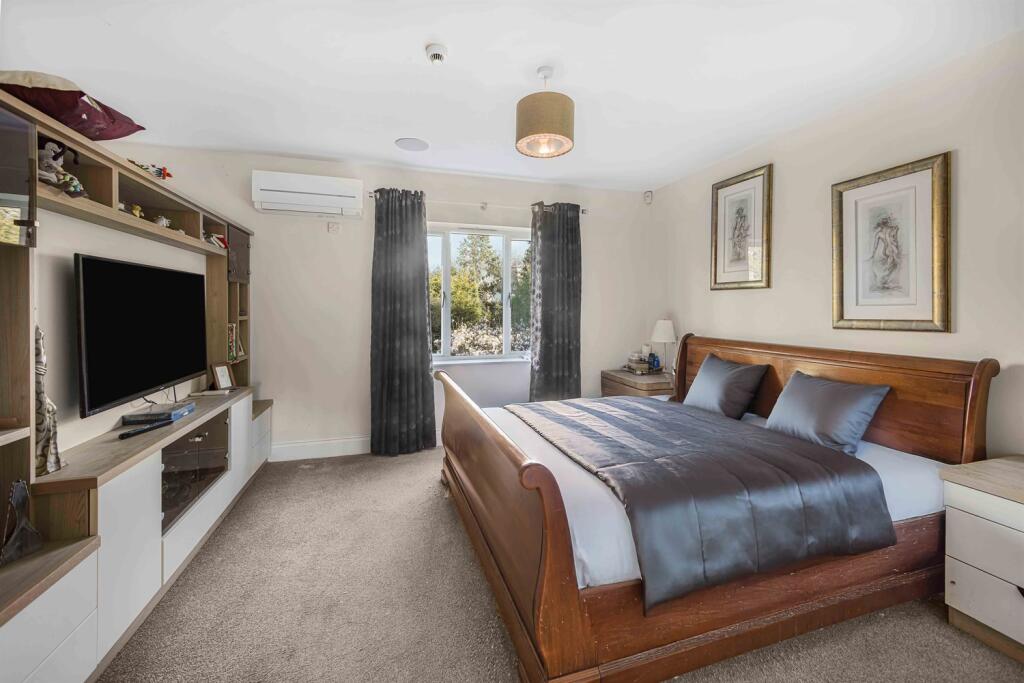 On the first floor, a generous landing highlighted by a striking stained glass window, leads to the luxurious principal Bedroom suite, which features a Dressing room and an En-suite Bathroom. Three further double Bedrooms are found on this floor, two of which also benefit from impressive fitted furniture and En-suite bathrooms.