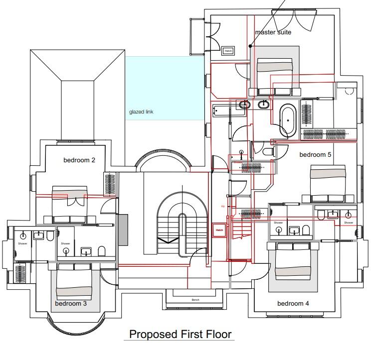 For a rear single-story extension and basement extension to include a lightwell with associated renovation works. Proposed plans available. The accommodation features a large reception hallway with a sweeping staircase, a huge open-plan kitchen with a large island, a dining room, and a living room with a glazed balustrade overlooking the lower courtyard. There are two further reception rooms, comprising a formal lounge and a study, as well as a utility room, pantry, and a ground-floor WC. To the first floor there is a feature galleried landing, a master bedroom suite with dressing room and a large ensuite bathroom four further bedrooms all with ensuites. The basement is an amazing feature of this property with full leisure suite including a large pool, gym, media/cinema, changing room, plant room and delightful courtyard allowing natural light and a link to the ground floor accommodation. Proposed c7,000 sq.ft or 10,000 sq.ft including leisure.