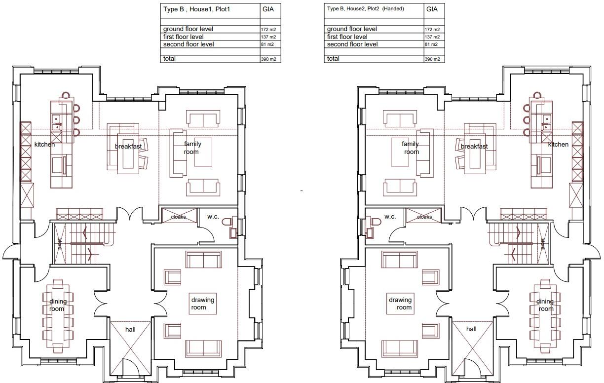 The proposed design is for two detached houses with accommodation of c4,200 sq.ft each arranged over three floors. The proposed development delivers a high-quality residential scheme that sensitively integrates architectural distinction, sustainable landscaping, and functional access arrangements.